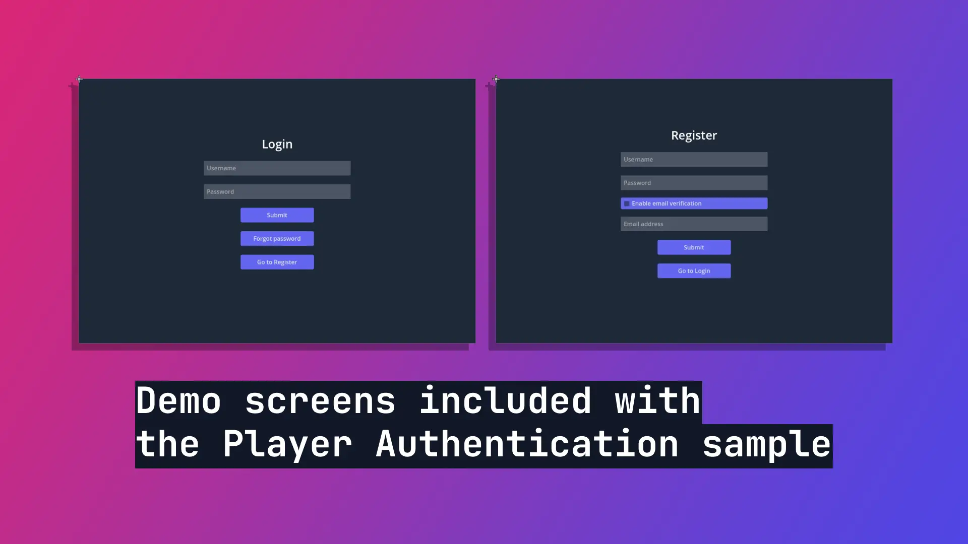 - ๐ Authentication: a registration/login/account management flow, showing how to create player accounts and authenticate them