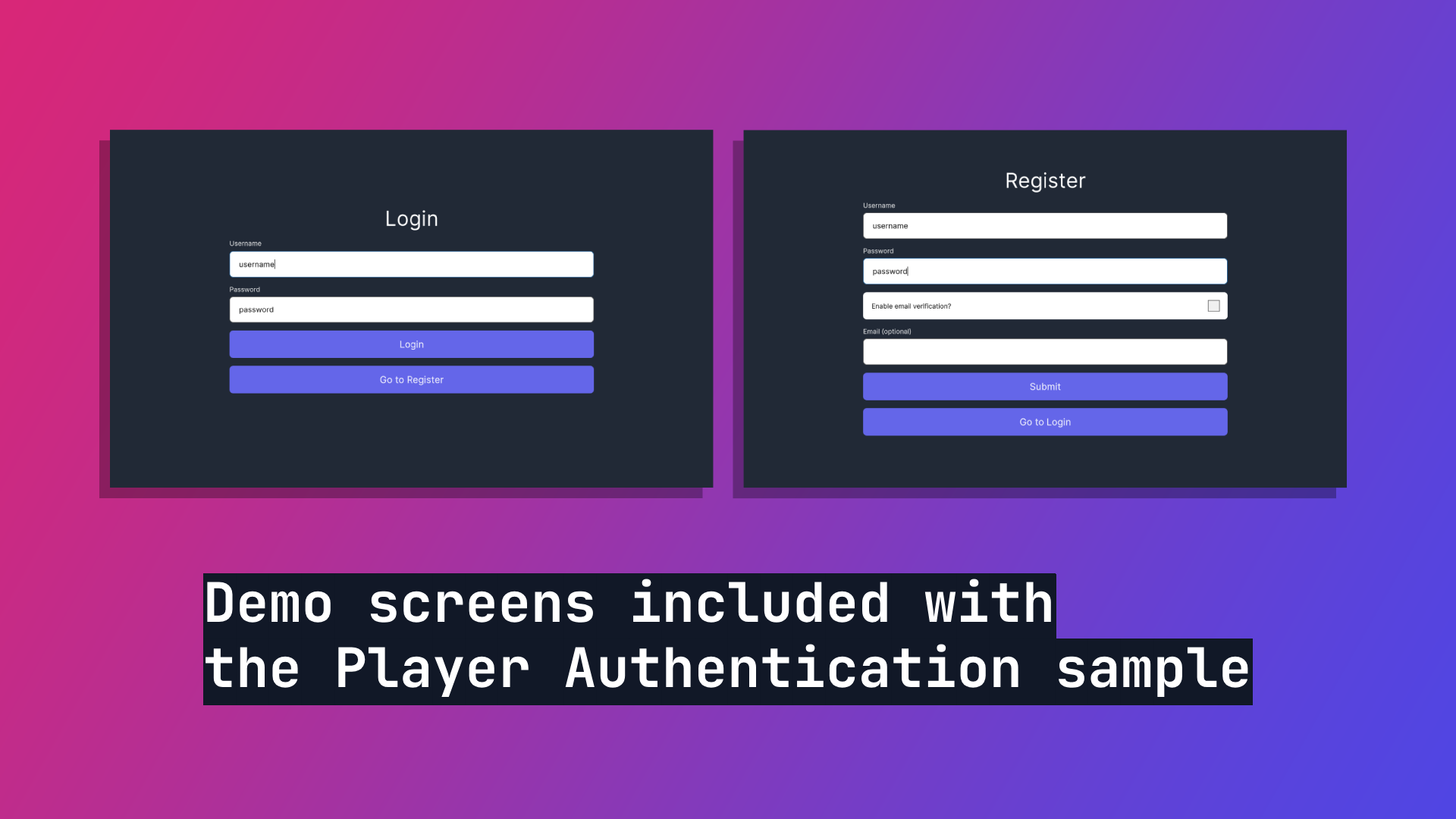 - ๐ Authentication: a registration/login flow, showing how to create player accounts and authenticate them